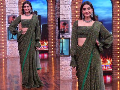 सोनम इस दौरान स्टाइलिश साड़ी में नजर आईं
