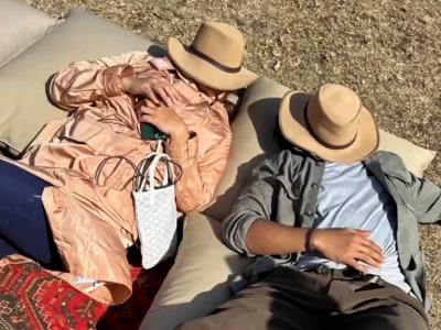 राम चरण ने हरे रंग की पैंट और शर्ट पहने दिखाई दे रहे हैं. वहीं उपासना लॉन्ग जैकेट के साथ हैट और चश्मा लगाए दिख रही हैं। (फोटो: इंस्टाग्राम)