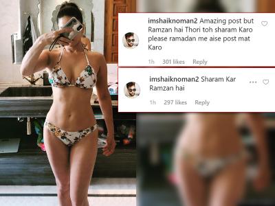 इस तस्वीर को देखने के बाद सोशल मीडिया पर यूजर्स ने उन्हें बुरी तरह ट्रोल करने लगे, एक यूजर ने तो यहां तक लिख दिया कि "अमेजिंग पोज रमजान है थोड़ी तो शर्म करो, प्लीज रमजान में ऐसे पोस्ट मत करो।"