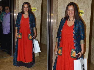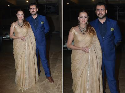 पार्टी में दिया मिर्जा भी पहुंची। गोल्डन कलर की साड़ी में वह बेहद खूबसूरत लग रही थीं।