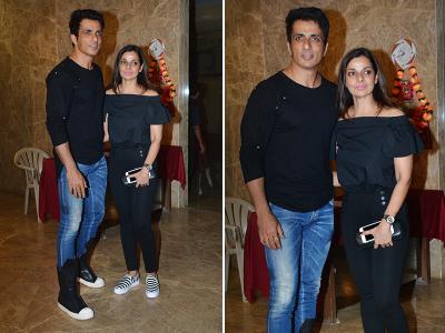 सोनू सूद अपनी पत्नी के साथ पार्टी में पहुंचे