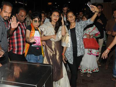 सिद्धिविनायक मंदिर के दौरान कई लोगों ने रानी के साथ सेल्फी भी क्लिक की।