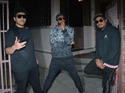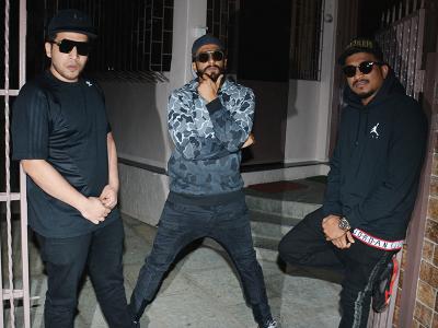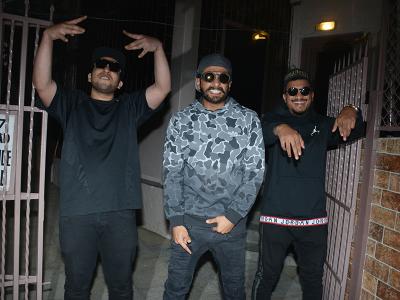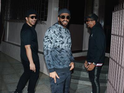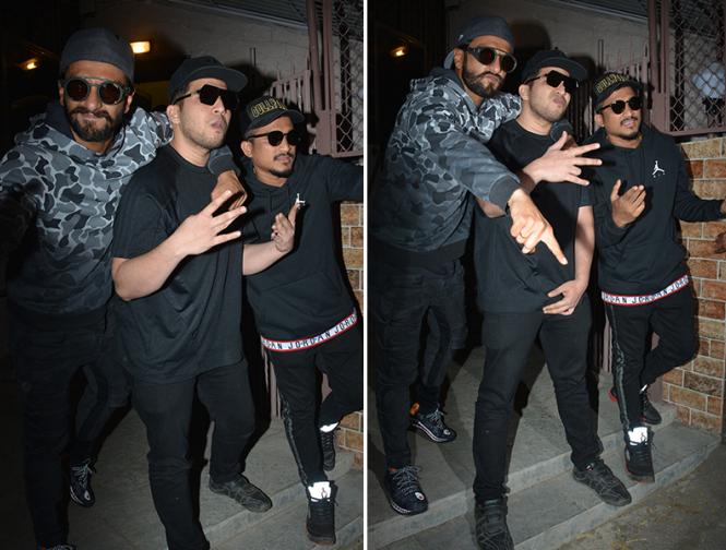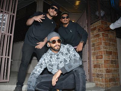 रणवीर बांद्रा में गली बॉय की टीम नेबा और दिव्य के साथ नजर आए हैं