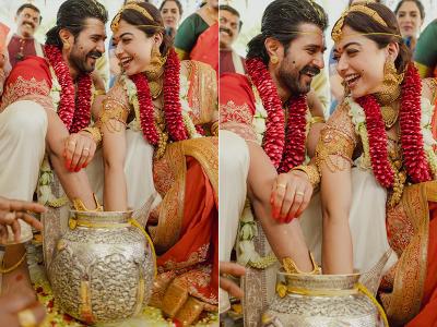 साउथ फिल्मों के स्टार रश्मिका मंदाना और विजय देवरकोंडा शादी के बंधन में बंध गये हैं, 26 फरवरी को दोनों ने शादी रचाई जिसमें परिवार और करीबी रिश्तेदार मौजूद रहे, शादी बिलकुल शांत और इंटीमेट थी। (फोटो क्रेडिट: इंस्टाग्राम)