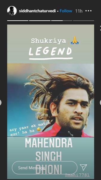 धोनी ने शनिवार को अपने इंस्टाग्राम पर लिखा, 'अब तक आपके प्यार और सहयोग के लिये धन्यवाद। शाम 7 बजकर 29 मिनट से मुझे रिटायर्ड समझिए।'