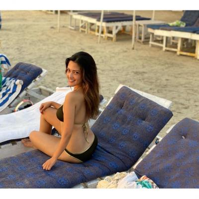 रिया सेन बीच पर बेहद ग्लैमरस अंदाज में लेटी हुई नजर आ रही हैं। (फोटो: इंस्टाग्राम)
