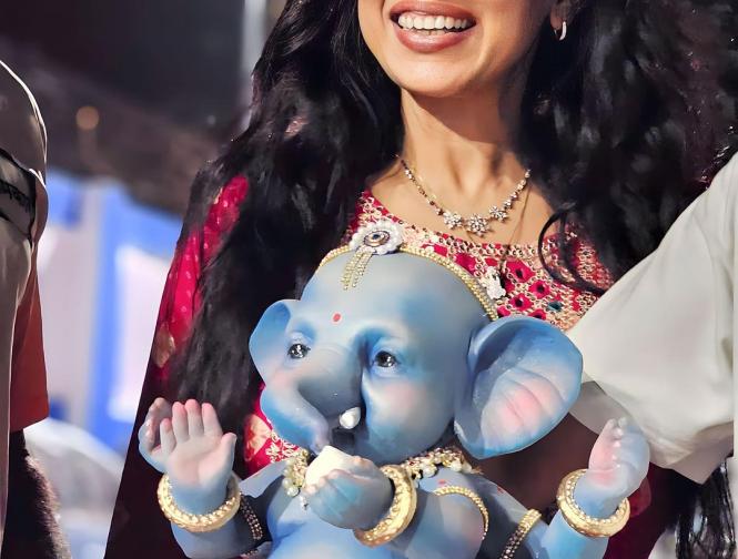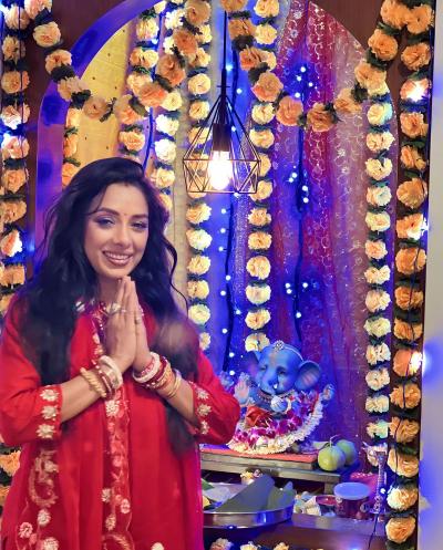 तस्वीरों में रुपाली गांगुली बाप्पा को घर लाकर बेहद खुश नजर आ रही हैं। (फोटो- इंस्टाग्राम)