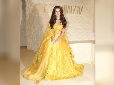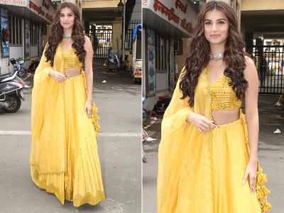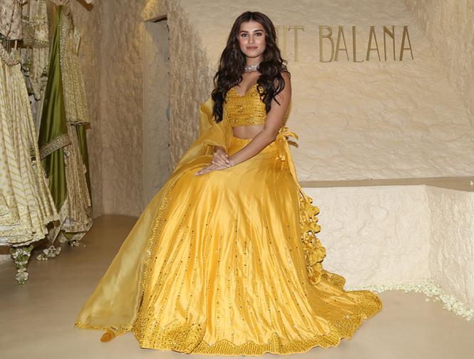 इस दौरान तारा यलो कलर के लेहेंगे में बेहद गॉर्जियस अंदाज में दिखाई दीं।
