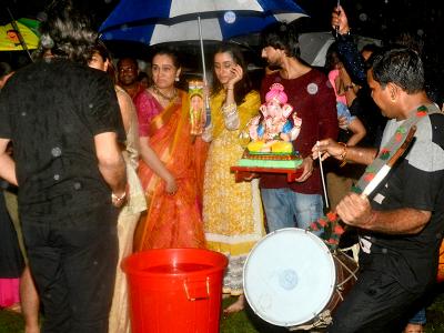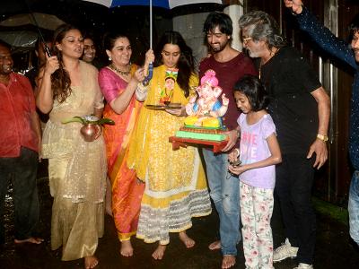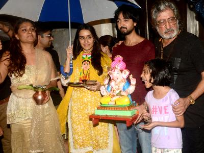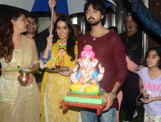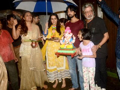 श्रद्धा के साथ गणपति विसर्जन में उनके पापा शक्ति कपूर और मां शिवांगी कपूर और भाई भी मौजूद रहे।