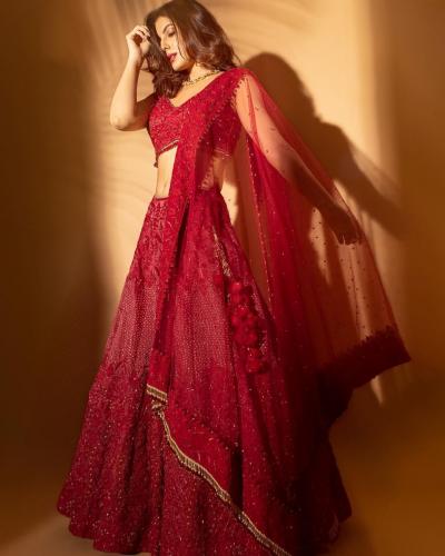 इन तस्वीरों में एलनाज रेड कलर के लहंगा चुनरी पहने नजर आ रही है, जिसमें वह शानदार दिख रही हैं। (फोटो: इंस्टाग्राम)