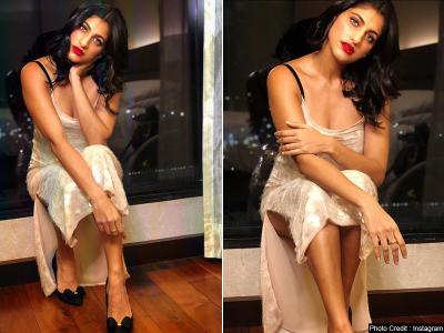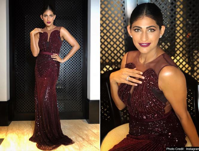कुब्रा वाइन कलर की इस ड्रेस में काफी स्टाइलिश और खूबसूरत दिख रही हैं।