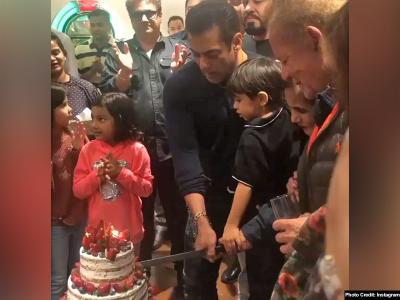 और इस जन्मदिन पर सलमान ने अपना बर्थडे केक अपने भांजे आहिल के साथ मिलकर काटा।