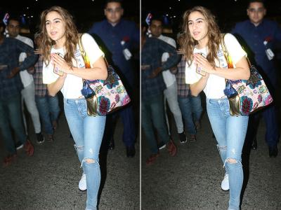 सारा अली खान भी 'कुली नंबर 1' की शूटिंग से लौटते हुए एयरपोर्ट पर नजर आईं।