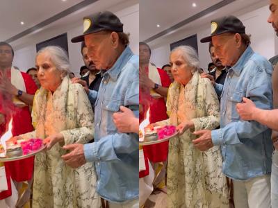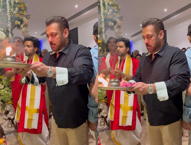 वीडियो में सलमान आरती करते हैं फिर उसकी मां सलमा और पिता सलीम खान आरती करते हैं।