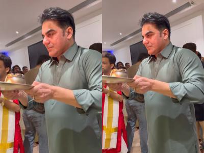 भाई सोहेल, अरबाज और बहन अलवीरा, अर्पिता और कई करीबी बारी-बारी आरती करते नजर आते हैं।