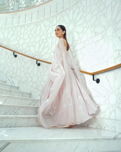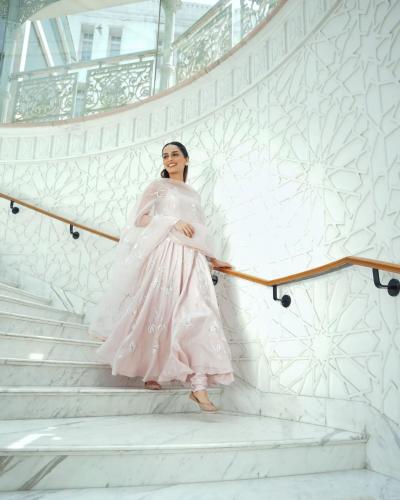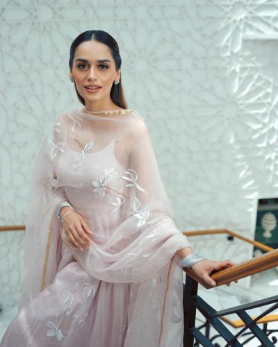 इन तस्वीरों में मानुषी छिल्लर लाइट पिंक कलर का सूट पहने बला की खुबसूरत लग रही हैं। (फोटो: इंस्टाग्राम)
