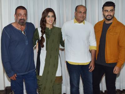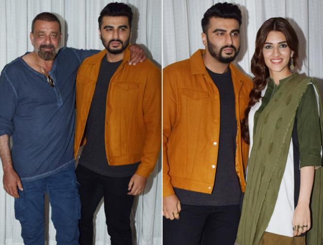 फिल्म 'पानीपत' के प्रमोशन के दौरान संजय दत्त, अर्जुन कपूर और कृति सेनन शानदार लुक में नजर आए।