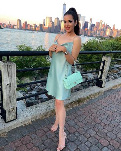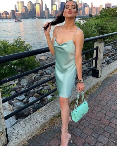इन तस्वीरों में त्रिशाला सी-ग्रीन कलर की स्लिप ड्रेस पहने हुए अपनी टोन्ड बॉडी को फ्लॉन्ट कर रही हैं। (फोटो: इंस्टाग्राम)