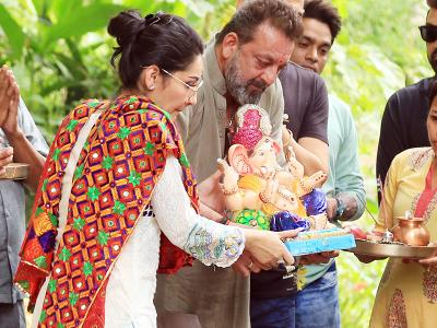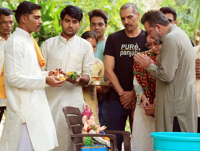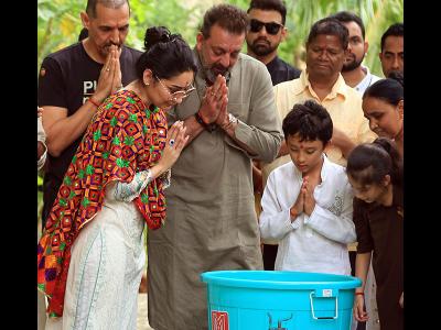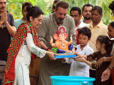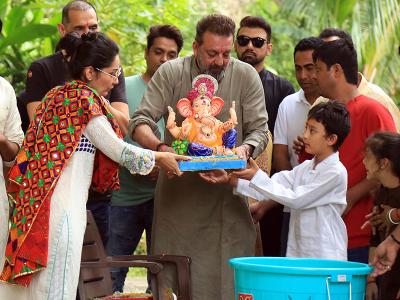 Pics: संजय दत्त ने इको फ्रेंडली तरीके से की गणपति बप्पा की विदाई, शामिल हुआ पूरा परिवार