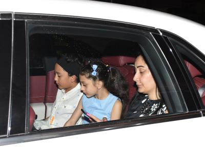 रेस्तरां से निकलते वक़्त पूरी फैमिली की कई तस्वीरें क्लिक हुईं।