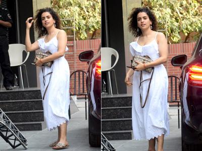 व्हाइट कलर की सूदिंग ड्रेस में सान्या बेहद सिंपल और सोबर लग रही थीं।
