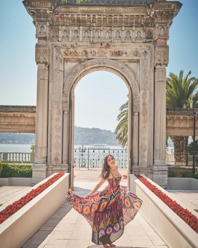 इन तस्वीरों में सारा डीप नेक प्रिंटेड ड्रेस पहने काफी बोल्ड नजर आ रही हैं। (फोटो: इंस्टाग्राम)