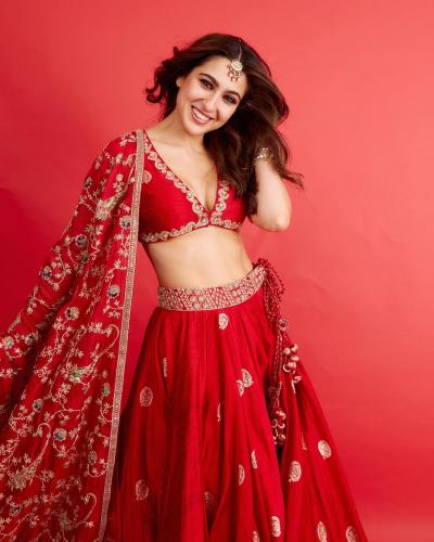 लाल लहंगे में सारा अली खान ने लगाया ग्लैमर का तड़का, देखें दिलकश तस्वीरें