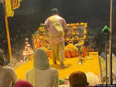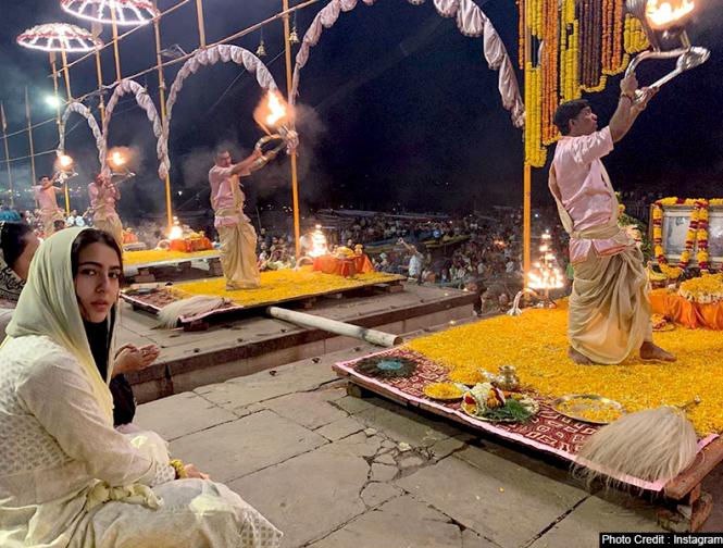 सारा अली खान ने गंगा आरती में हिस्सा लिया और घाट पर फोटोशूट भी करवाया।