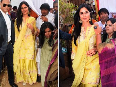 इस दौरान पीले रंग के सूट में एक्ट्रेस कटरीना कैफ ट्रेडनिशल लुक में दिखीं।