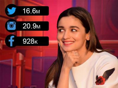 आलिया भट्ट के ट्विटर पर 16.6, फेसबुक पर 928k और इंस्टाग्राम पर 20.9 मिलियन फॉलोवर्स हैं।