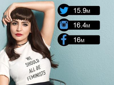 अनुष्का शर्मा के ट्विटर पर 15.9, फेसबुक पर 16 और इंस्टाग्राम पर 16.4 मिलियन फॉलोवर्स हैं।