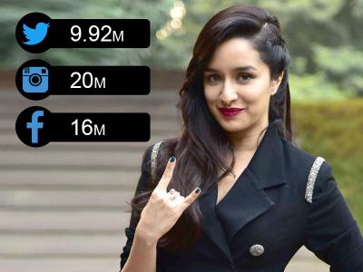 श्रद्धा कपूर के ट्विटर पर 9.92, फेसबुक पर 16 और इंस्टाग्राम पर 20 मिलियन फॉलोवर्स हैं।