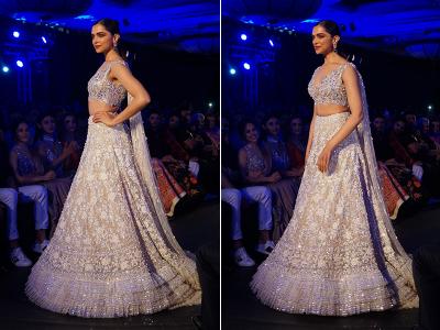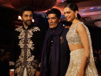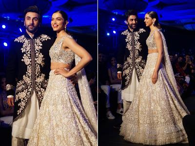 इस रैंप वॉक के दौरान दीपिका ने ग्लिटरी गाउन पहना था। वहीं, रणबीर ने ब्लैक और क्रीम फ्लोरल शेरवानी पहनी थी।