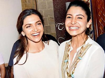 इस तस्वीर में दीपिका और अनुष्का शर्मा मुस्कुराते हुए दिख रहीं है।