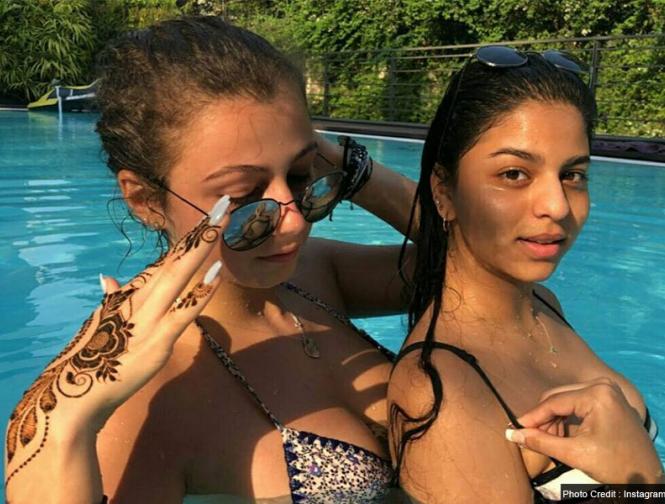 इस तस्वीरों में सुहाना अपने फ्रेंड्स के साथ पूल में चिल करती नजर आ रही हैं।