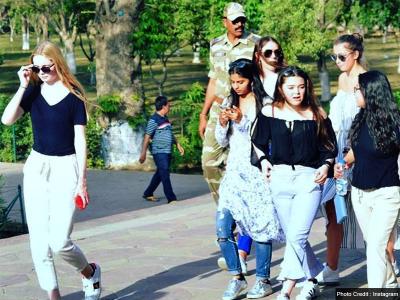 आगरा शहर मे सुहाना अपने दोस्तों के साथ मस्ती वाले मूड में पोज देते हुए नजर आर रही हैं।