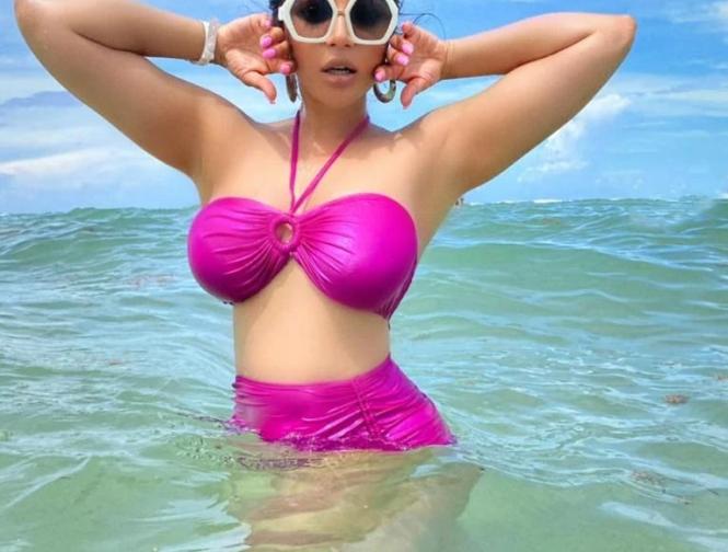 पिंक मोनोकिनी ड्रेस में शमा सिकंदर इस फोटो में बेहद ग्लैमरस नजर आ रही हैं। (फोटो इंस्टाग्राम)