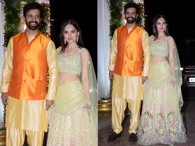 हरभजन सिंह अपनी पत्नी गीता बसरा के साथ दिवाली पार्टी में दिखे