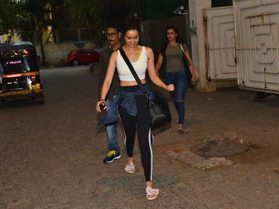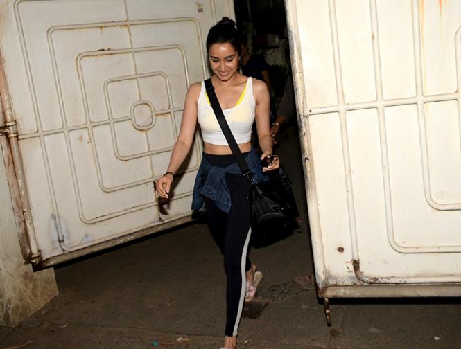 श्रद्धा कपूर रिसेंटली जुहू में जिम से बाहर व्हाइट क्रॉप टॉप और जिम सूट में स्पॉट की गईं।