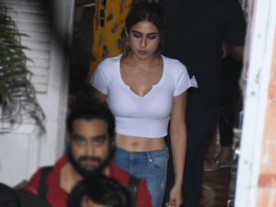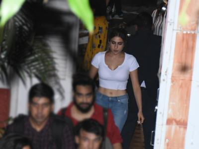 सारा अली खान हाल ही में मुंबई के बंदर में देर रात शूटिंग खत्म करने के बाद घर वापस लौटती हुई आईं नजर।
