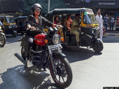 सोनाक्षी मुंबई के टैफिक के बीच से बहुत बढ़िया तरीके से बाइक निकाल कर ले जाती हैं।