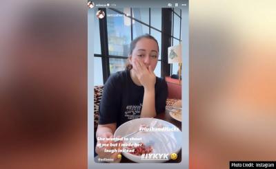 लेटेस्ट फोटो में सोनाक्षी सिन्हा हाथ में जूस का गिलास लिए नजर आ रही हैं और पीछे की ओर देख रही हैं और जहीर सेल्फी ले रहे हैं। (फोटो- इंस्टाग्राम)