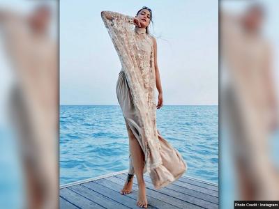 सोनाक्षी की इस ड्रेस को फैशन डिज़ाइनर फाल्गुनी शैन पिकॉक ने डिज़ाइन किया है।