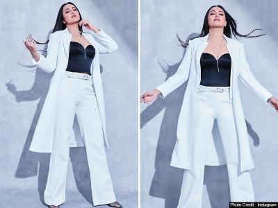 इस फोटोशूट में एक्ट्रेस सोनाक्षी वाइट एंड ब्लैक कलर की ड्रेस में बेहद ग्लैमरस नजर आ रही हैं।