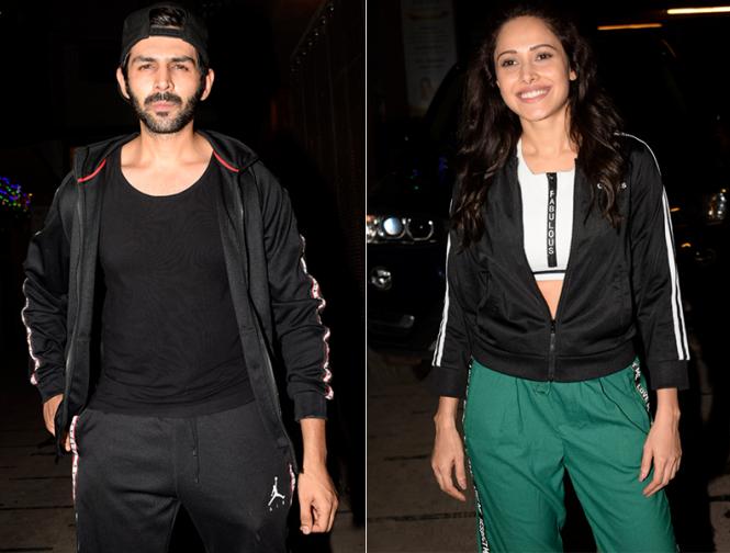 फिल्म 'सोनू के टीटू की स्वीटी' स्टार नुसरत भरूचा और कार्तिक आर्यन हाल ही में जुहू में जिम सेशन के बाद आए नजर।