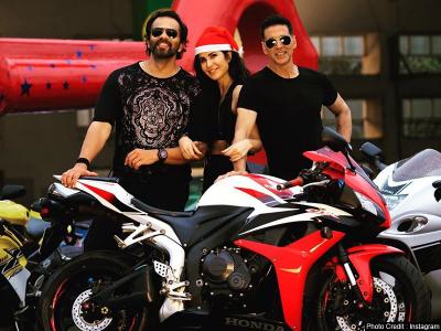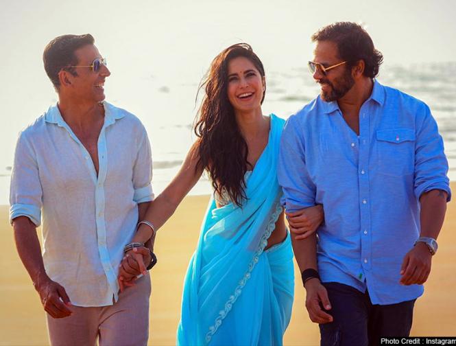इस फोटो में अक्षय कैटरीना के अलावा फिल्म के डायरेक्टर रोहित शेट्टी भी नजर आ रहे हैं।