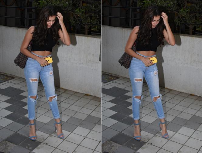 तारा ब्लैक क्रॉप टॉप और रिप्पड जीन्स में बेहद स्टाइलिश और डैशिंग दिख रही है।