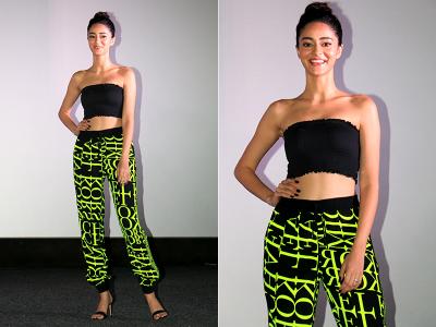 अनन्या पांडे प्रमोशन के दौरान ऑफ शोल्डर टॉप के साथ ट्राउजर में नजर आईं, इस दौरान अनन्या बेहद हॉट अंदाज में दिखीं।