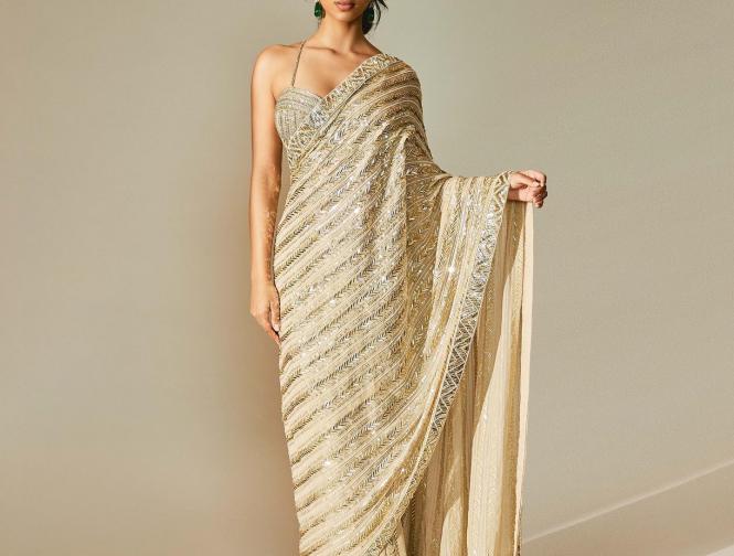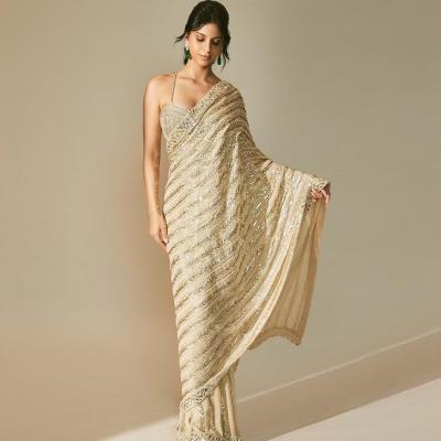 सुहाना खान ने शेयर की ग्लैमरस तस्वीरें, गोल्डन साड़ी में दिखाया देसी लुक