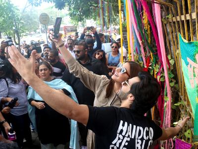 अनुष्का फिल्म के प्रमोशन के दौरान अपने फैंस को चीयर करती नजर आईं...